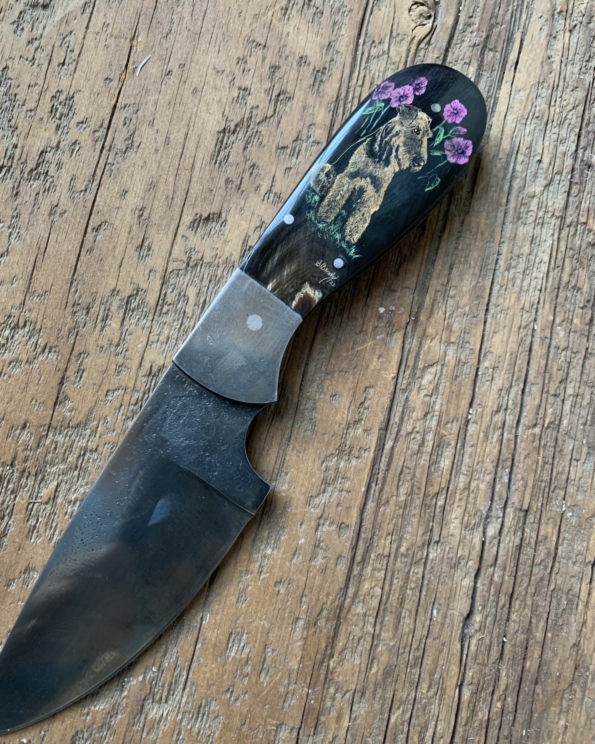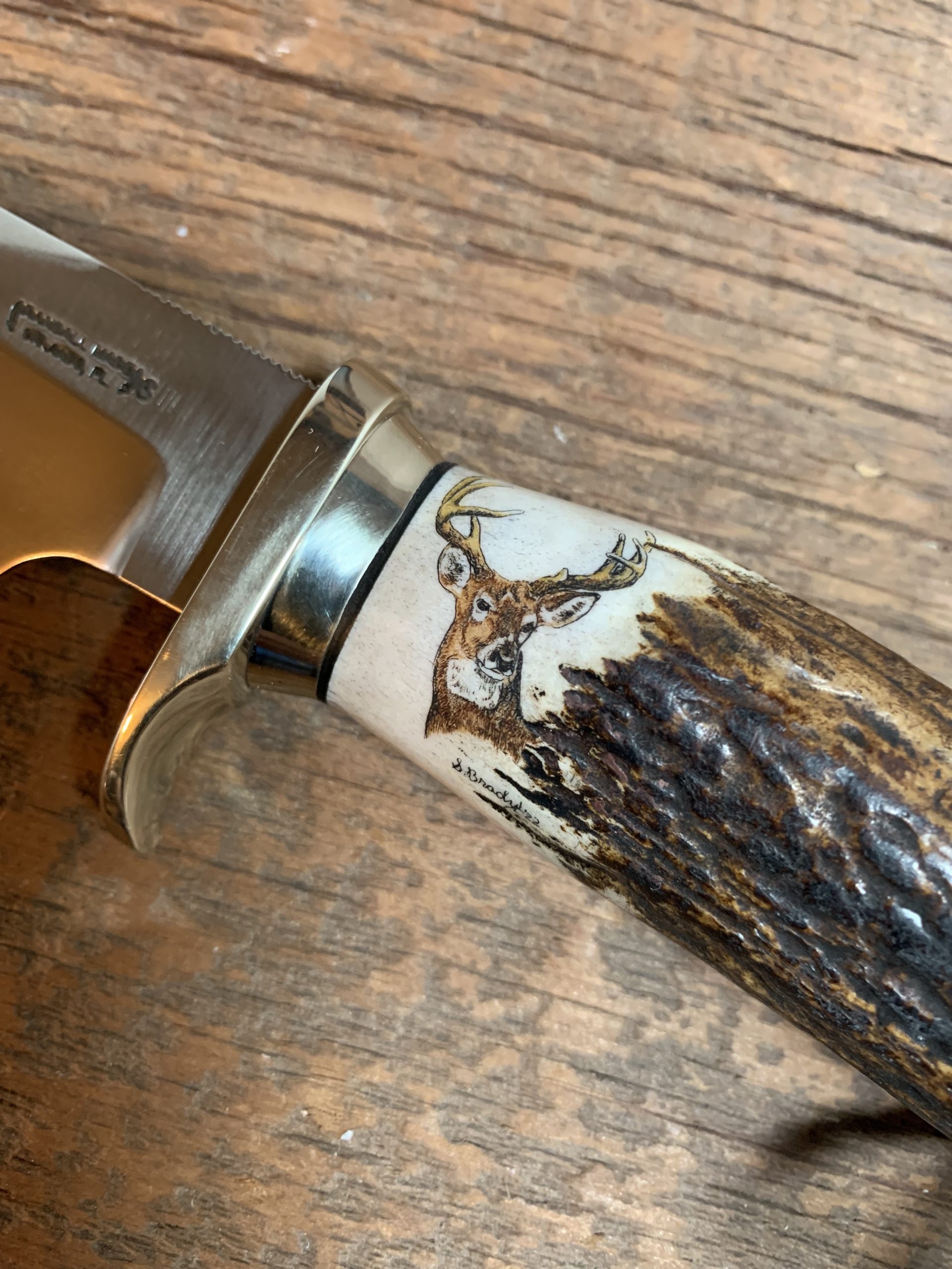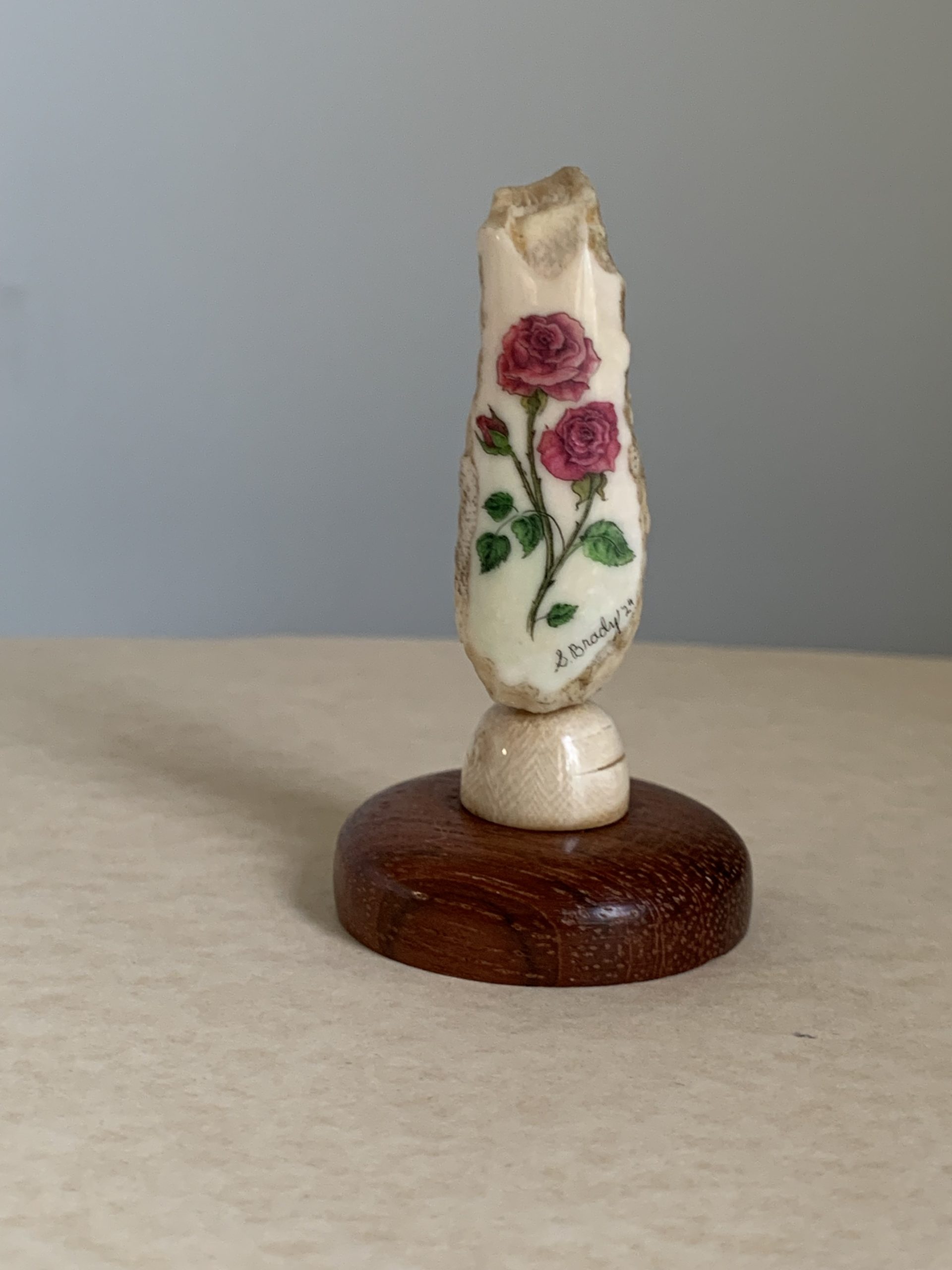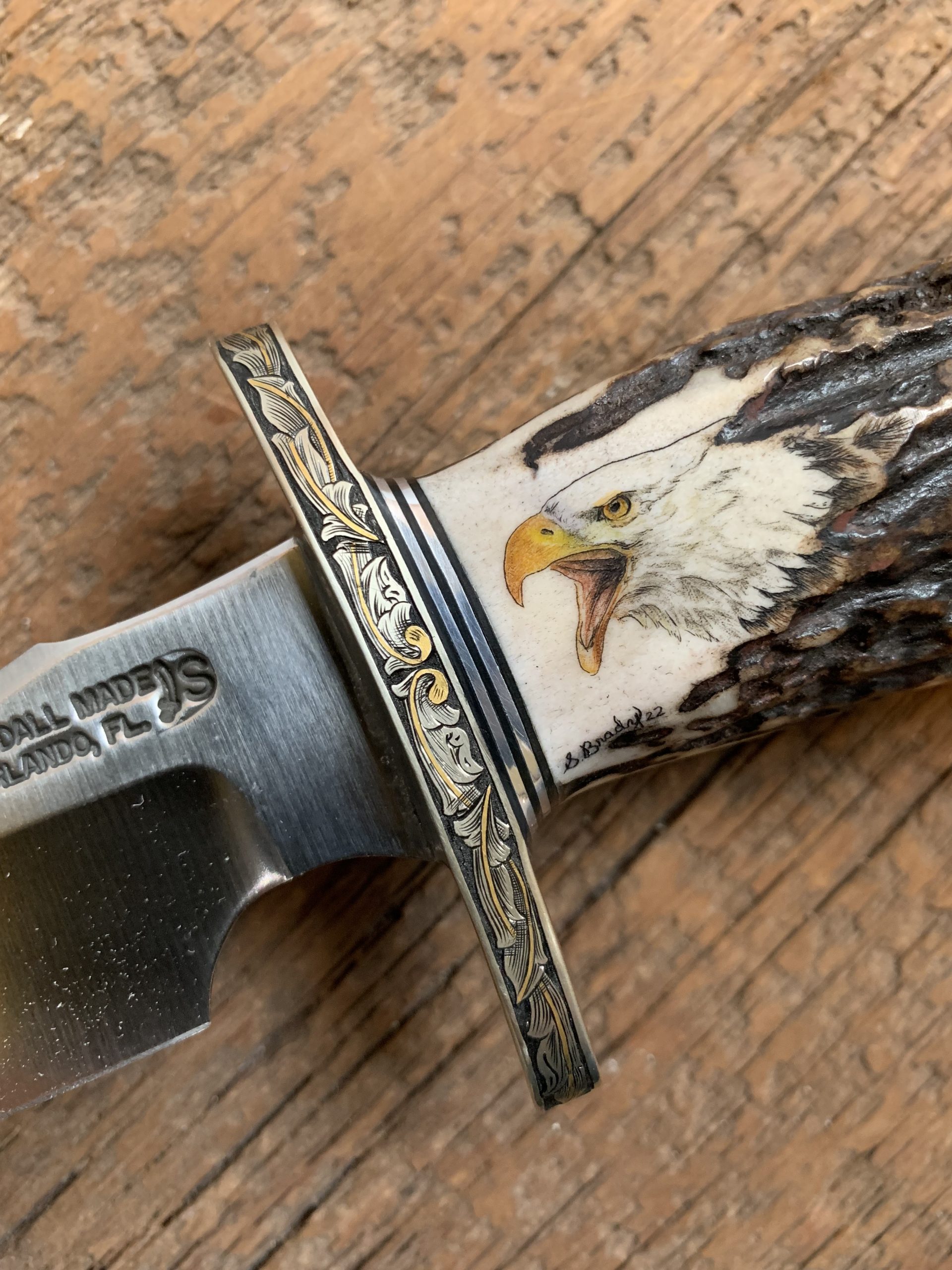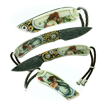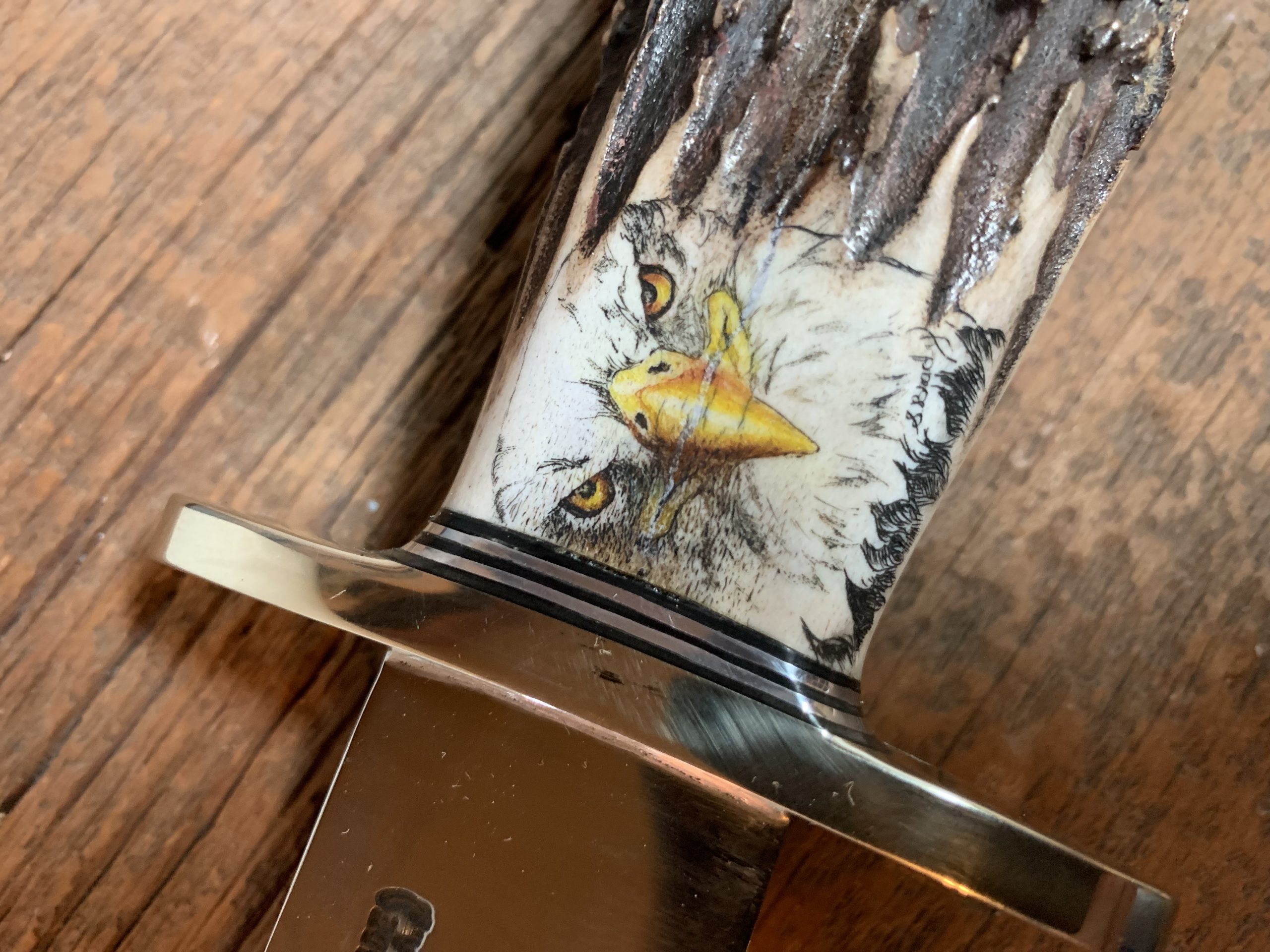 This cue is my most exciting, fun and challenging collaboration with cue maker Richard Black. My original design, Richard’s knowledge, skillful inlaying of various materials, and my scrimshaw artwork make this the most unique cue ever. You can check this out for a complete